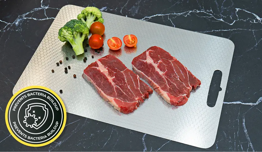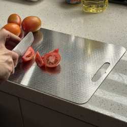 "Your cutting board is a bacteria breeding ground. Scratches trap germs, plastic sheds toxic chemicals, and wooden boards absorb raw meat juices—turning your food into a contamination disaster."