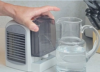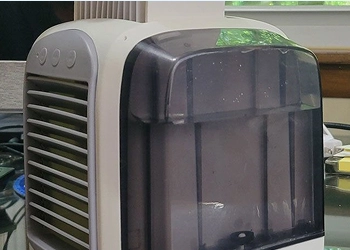 "I am surprised how this really small and portable device can cool air so rapidly. I just add cold water and power and can feel the difference in my study in just minutes. The great thing it’s lightweight – I was able to take it with me on my last camping trip!"