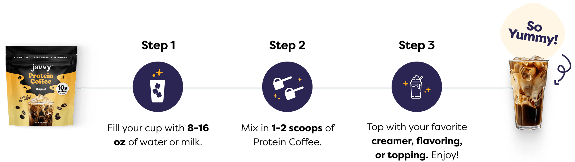 It’s SO SIMPLE: Enjoy the easiest way to make an iced coffee at home or on the go with Javvy—no more chalky shakes, long coffee lines, or struggling for barista-grade brews; just quick, effortless nutrition in every cup.