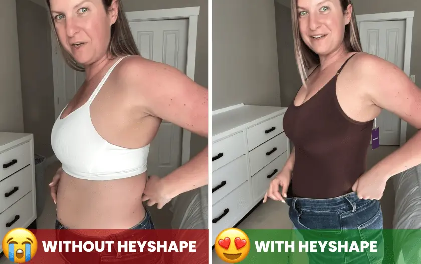 “The suit is super comfy and makes me look 1 size smaller ( normally XL and now L). I wore it under my normal clothes and felt so much more confident and recieved lots of compliments.Thank you so much HeyShape for getting this Momma back on track to feeling myself again.”